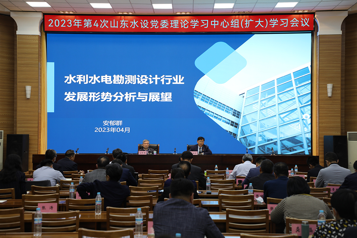 4月20日,為深入貫徹落實(shí)習(xí)近平新時代中國特色社會主義思想主題教育總體要求,切實(shí)推進(jìn)運(yùn)用黨的創(chuàng)新理論指導(dǎo)實(shí)踐,充分發(fā)揮黨委理論學(xué)習(xí)中心組帶頭示范作用,山東省水利勘測設(shè)計(jì)院有限公司(以下簡稱山東水設(shè))召開了2023年度第四次黨委理論學(xué)習(xí)中心組(擴(kuò)大)學(xué)習(xí)會議,會議以“學(xué)習(xí)習(xí)近平總書記關(guān)于推動高質(zhì)量發(fā)展的重要論述,奮力譜寫新時代山東高質(zhì)量發(fā)展新篇章”為主題進(jìn)行了學(xué)習(xí),并邀請中國水利水電勘測設(shè)計(jì)協(xié)會改革研究委員會秘書長安郁群同志作專題報(bào)告。公司黨委書記、董事長劉紹清主持會議并發(fā)言,公司黨委班子成員、中層副職以上管理人員,分公司、一級權(quán)屬企業(yè)董事長、總經(jīng)理、副總經(jīng)理及相關(guān)工作人員參加此次會議。