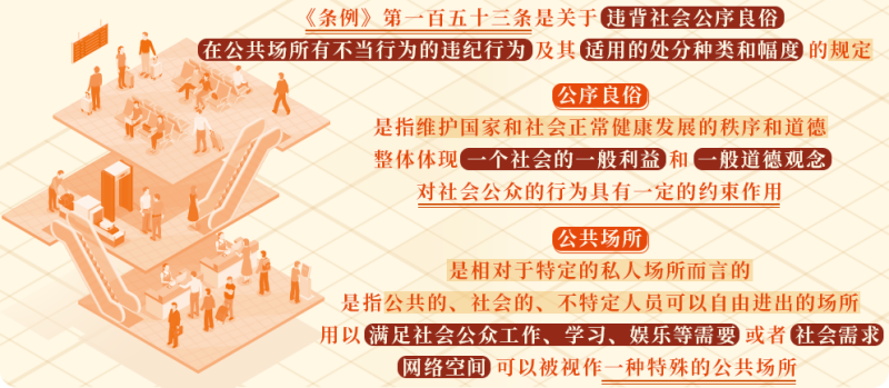 《條例》第一百五十三條規(guī)定,違背社會公序良俗,在公共場所、網(wǎng)絡(luò)空間有不當言行,造成不良影響的,給予相應(yīng)處分。