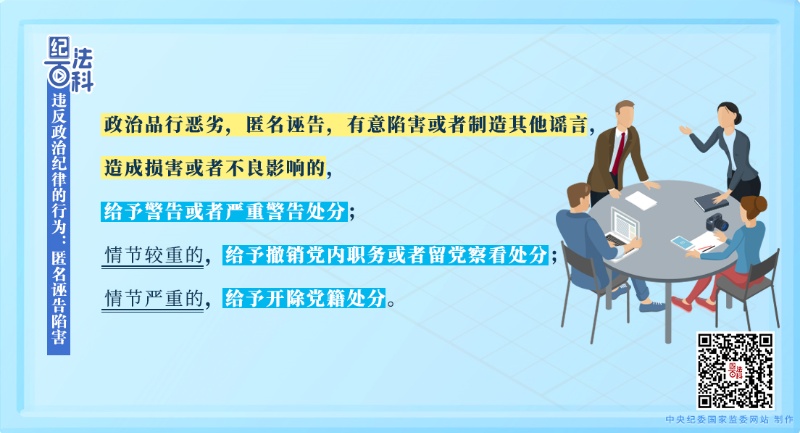《中國共產(chǎn)黨紀(jì)律處分條例》第五十九條第二款規(guī)定,政治品行惡劣,匿名誣告,有意陷害或者制造其他謠言,造成損害或者不良影響的,給予警告或者嚴(yán)重警告處分;情節(jié)較重的,給予撤銷黨內(nèi)職務(wù)或者留黨察看處分;情節(jié)嚴(yán)重的,給予開除黨籍處分。