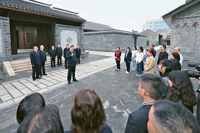 2024年10月17日至18日,中共中央總書(shū)記、國(guó)家主席、中央軍委主席習(xí)近平在安徽考察。這是17日下午,習(xí)近平在安慶桐城市六尺巷考察時(shí),同當(dāng)?shù)鼐用窈陀慰陀H切交流。新華社記者 申宏/攝