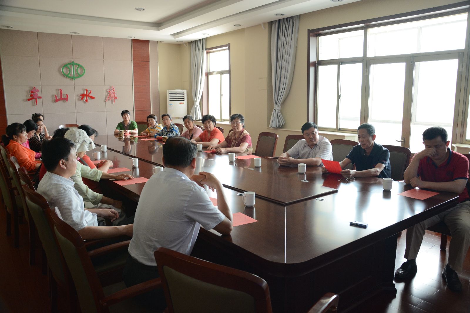 不知不覺,經(jīng)過五個(gè)小時(shí)的奔波,大家終于到了夢中來過千百回的地方——牟山水庫。到了既熟悉又陌生的水庫管理局的大門前,她們迫不及待地四下打量,尋找熟悉的青春記憶。水庫管理局的李國鋒局長似乎看透了大家急切的心情,他邀請大家到會議室:“先給你們這些特殊的客人介紹一下情況,然后我們帶你們看一下紀(jì)念館和水庫。”