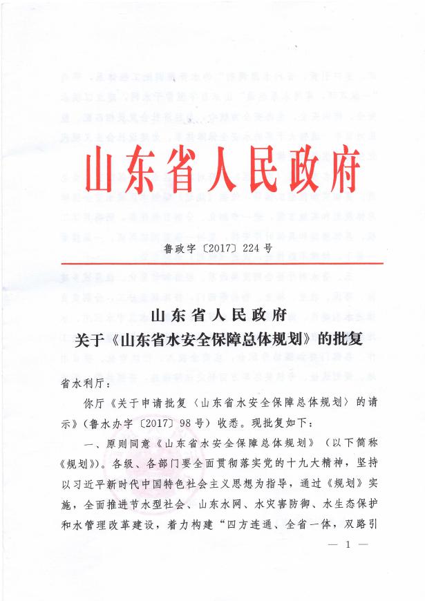“山東省水安全保障總體規(guī)劃”立足山東省情、水情,突出問題導(dǎo)向、目標(biāo)導(dǎo)向,建立以供水安全、防洪安全、生態(tài)安全為核心,與經(jīng)濟(jì)社會(huì)發(fā)展相匹配、具有山東特色的水安全保障體系,對(duì)保障山東經(jīng)濟(jì)社會(huì)健康持續(xù)發(fā)展具有重要意義。本規(guī)劃是國(guó)內(nèi)首個(gè)經(jīng)省委、省政府審議批復(fù)實(shí)施的省級(jí)水安全保障總體規(guī)劃,具有開創(chuàng)性;規(guī)劃深入貫徹新發(fā)展理念,落實(shí)節(jié)水優(yōu)先、空間均衡、系統(tǒng)治理、兩手發(fā)力治水思路,提出了“五策并舉、五水并治、五水并用”的總體布局,構(gòu)建“四方連通、全省一體、雙路引江、多口引黃、省內(nèi)水源調(diào)劑”的水資源調(diào)配工程體系,形成“一縱雙環(huán)、庫河水連通”山東百字型骨干水網(wǎng),為目前開展的南水北調(diào)后續(xù)工程規(guī)劃、國(guó)家水網(wǎng)規(guī)劃等奠定了良好的基礎(chǔ)。該項(xiàng)目榮獲全國(guó)優(yōu)秀水利水電工程勘測(cè)設(shè)計(jì)銅質(zhì)獎(jiǎng)。