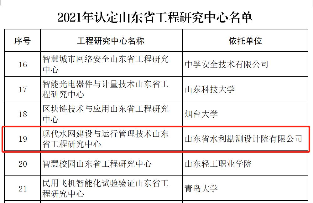 近日,山東省發(fā)展和改革委員會(huì)發(fā)布《2021年認(rèn)定山東省工程研究中心名單》的通知。經(jīng)過(guò)各市發(fā)展改革委、省有關(guān)單位等初審和推薦、專(zhuān)家組綜合評(píng)價(jià)和信息審核等程序,山東省水利勘測(cè)設(shè)計(jì)院有限公司(以下簡(jiǎn)稱(chēng)“山東水設(shè)”)牽頭,聯(lián)合浪潮軟件科技有限公司、浪潮通信技術(shù)有限公司組建的“現(xiàn)代水網(wǎng)建設(shè)與運(yùn)行管理技術(shù)山東省工程研究中心”(以下簡(jiǎn)稱(chēng)工程研究中心)獲批,正式列入山東省省級(jí)工程研究中心之一。