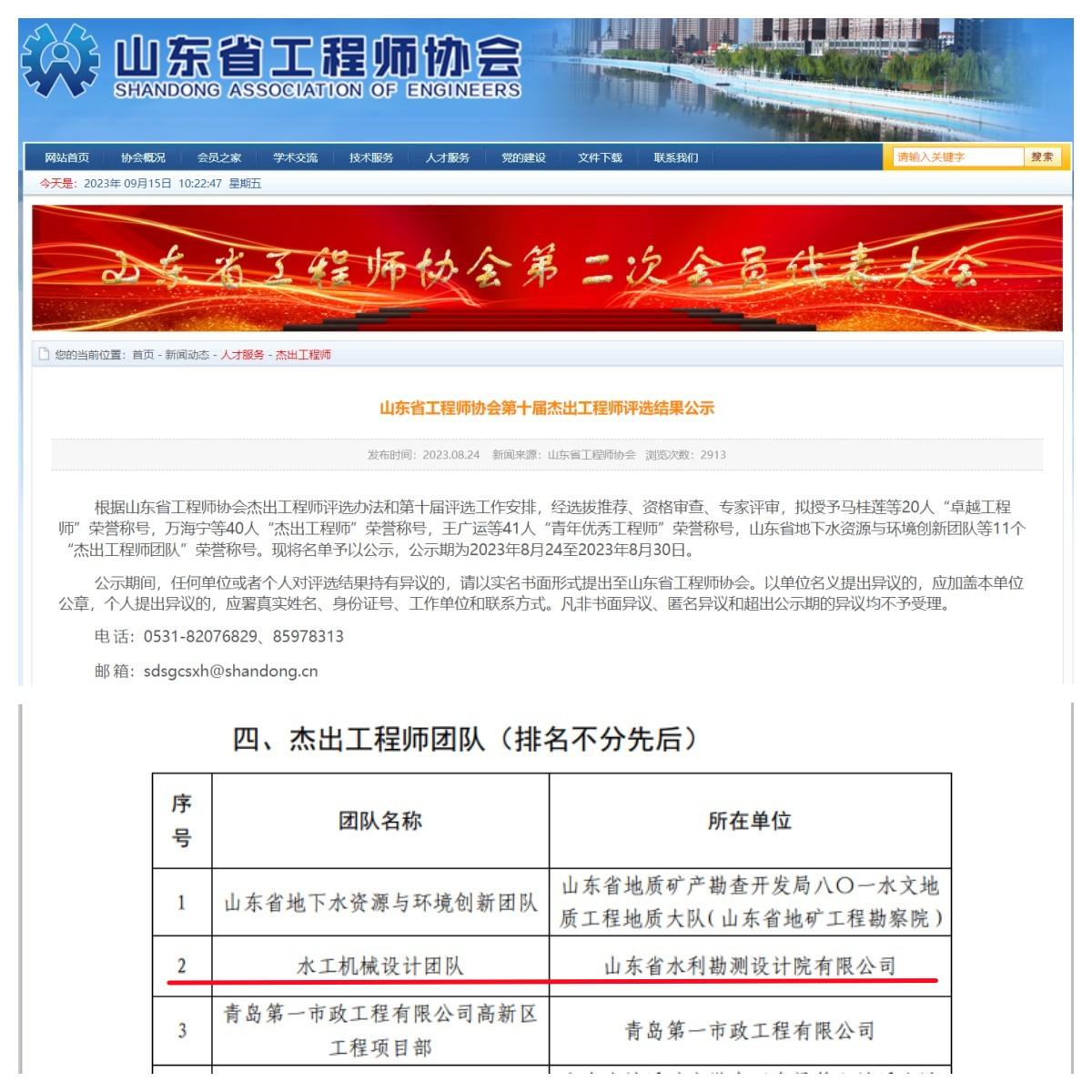 喜訊!山東水設(shè)水機與市政設(shè)計院榮獲“杰出工程師團隊”稱號