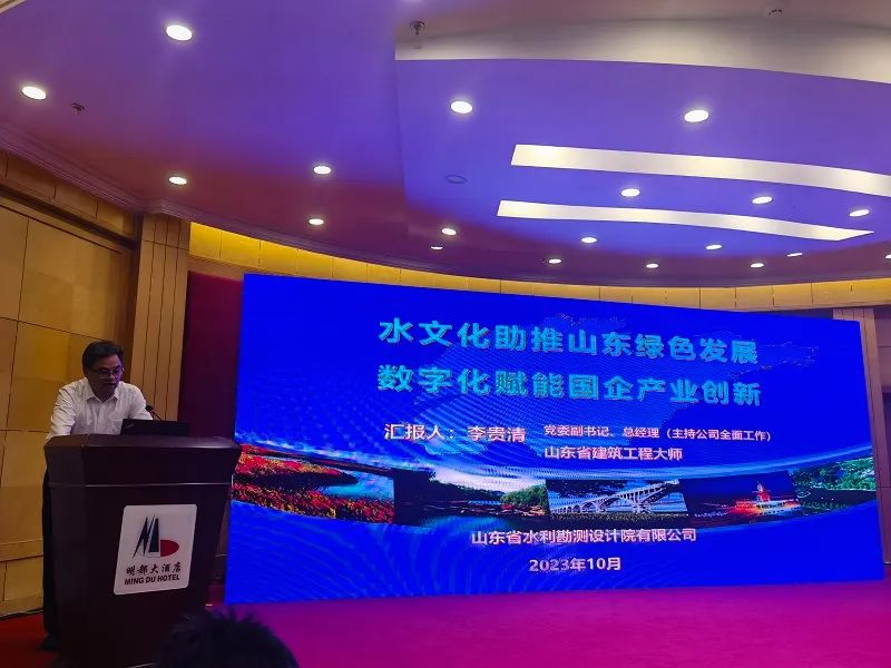 山東省水利勘測(cè)設(shè)計(jì)院有限公司黨委副書記、董事、總經(jīng)理(主持公司全面工作)李貴清參加了本次會(huì)議,并應(yīng)邀在大會(huì)上做了“水文化助推山東綠色發(fā)展,數(shù)字化賦能國企產(chǎn)業(yè)創(chuàng)新”的主題報(bào)告。在主題報(bào)告中,李貴清總經(jīng)理簡(jiǎn)要介紹了我公司轉(zhuǎn)企改制以來的發(fā)展情況,并就國家水網(wǎng)構(gòu)建、水文化建設(shè)、數(shù)字化轉(zhuǎn)型和產(chǎn)業(yè)發(fā)展等具體問題交流了看法。構(gòu)建 “一軸三環(huán)、七縱九橫、兩湖多庫”的山東現(xiàn)代水網(wǎng),是省委、省政府深入貫徹習(xí)近平總書記重要指示要求,著力破解全省水資源瓶頸制約的關(guān)鍵一招,也是當(dāng)前一段時(shí)期山東水利工作的中心任務(wù)。李貴清總經(jīng)理強(qiáng)調(diào),我公司將聚焦國家戰(zhàn)略,體現(xiàn)國企擔(dān)當(dāng),全力推動(dòng)山東現(xiàn)代水網(wǎng)建設(shè)。針對(duì)水文化建設(shè),李貴清總經(jīng)理指出,我公司結(jié)合齊魯大地深厚文化底蘊(yùn),努力找尋水文化和水利工程在建筑形態(tài)、空間塑造、節(jié)點(diǎn)展現(xiàn)和綠化美化等方面的結(jié)合點(diǎn),融入特色水文化元素,建設(shè)了一批水文化內(nèi)涵豐富工程。在規(guī)劃設(shè)計(jì)中我們將堅(jiān)持水資源、水安全、水文化、水環(huán)境、水生態(tài)“五水統(tǒng)籌”,積極推動(dòng)“工程+文化”建設(shè)。針對(duì)數(shù)字化轉(zhuǎn)型和產(chǎn)業(yè)創(chuàng)新發(fā)展,李貴清總經(jīng)理通過對(duì)我公司近年來數(shù)字化轉(zhuǎn)型和數(shù)字產(chǎn)業(yè)發(fā)展的經(jīng)驗(yàn)總結(jié),提出了水利水電勘測(cè)設(shè)計(jì)單位要持續(xù)探索水利數(shù)字化產(chǎn)業(yè)商業(yè)模式創(chuàng)新、不斷提升企業(yè)的數(shù)字經(jīng)濟(jì)能力和延伸構(gòu)建產(chǎn)業(yè)互聯(lián)網(wǎng)平臺(tái)等三條建議。