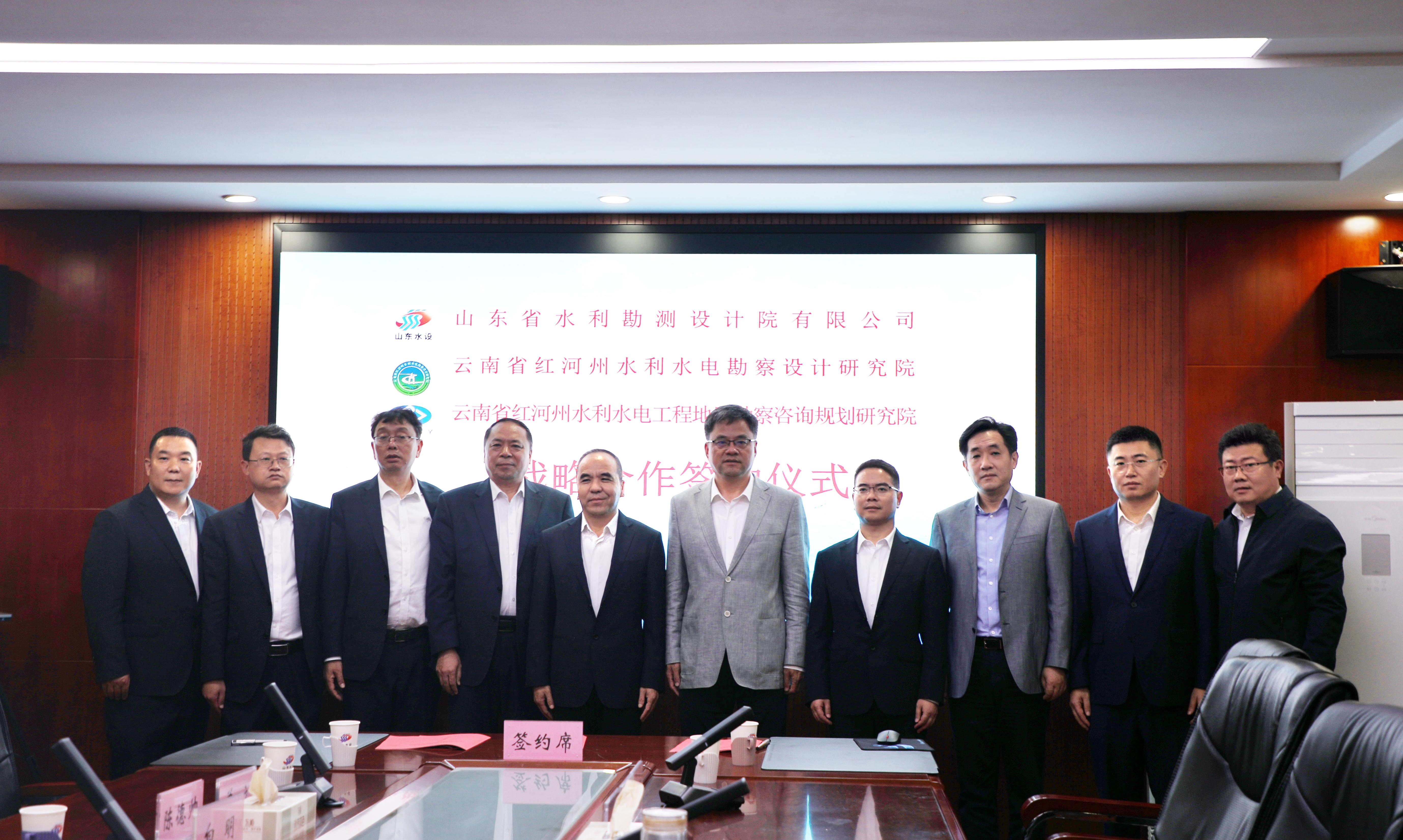 11月3日下午,山東省水利勘測設(shè)計院有限公司(以下簡稱山東水設(shè))與云南省紅河州水利水電勘察設(shè)計研究院(以下簡稱紅河州水勘設(shè)計院)、紅河州水利水電工程地質(zhì)勘察咨詢規(guī)劃研究院(以下簡稱紅河州水利規(guī)劃院)戰(zhàn)略合作協(xié)議簽約儀式在濟(jì)南舉行。山東水設(shè)黨委副書記、董事、總經(jīng)理(主持公司全面工作)李貴清,山東水設(shè)黨委委員、副總經(jīng)理尹起亮,黨委委員、副總經(jīng)理戴小兵,黨委委員、副總經(jīng)理劉帥,紅河州水利局黨組成員、紅河州水勘設(shè)計院院長段吉鴻,紅河州水利規(guī)劃院院長張學(xué)森等出席簽約儀式。